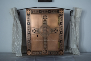 Passing in front of it we come to the North Door, just to the left of it is a small door leading to the tower. Above this door is a plaque recording that the Chime of Bells were presented by the oil companies operating within the Diocese. The bells were cast at the famous Taylor Bell Foundry at Loughborough in England and form a chime of eight.